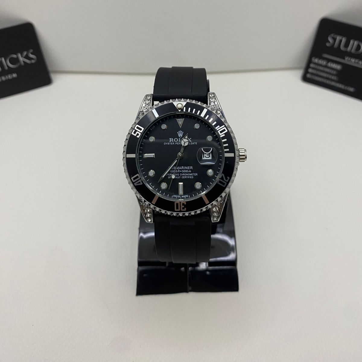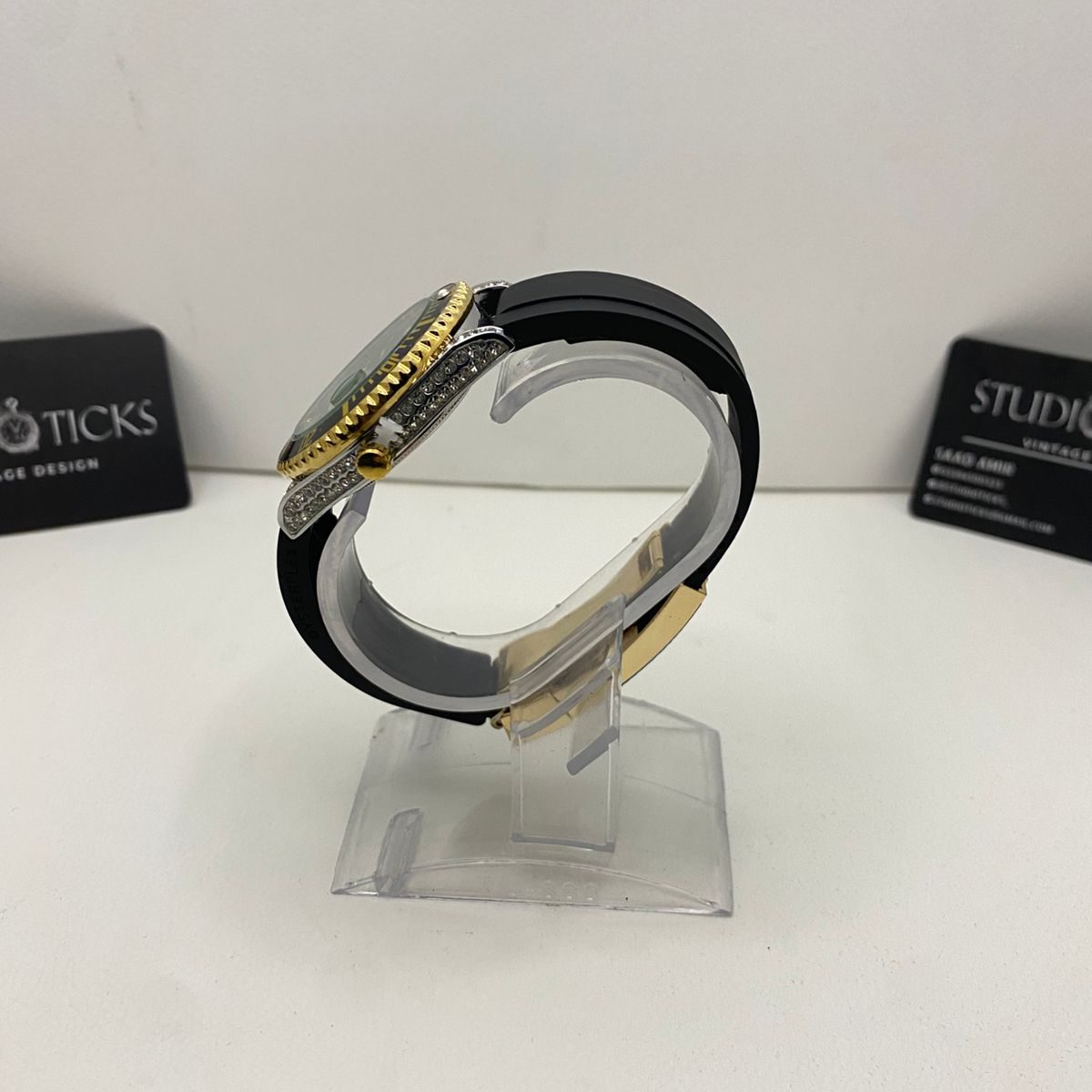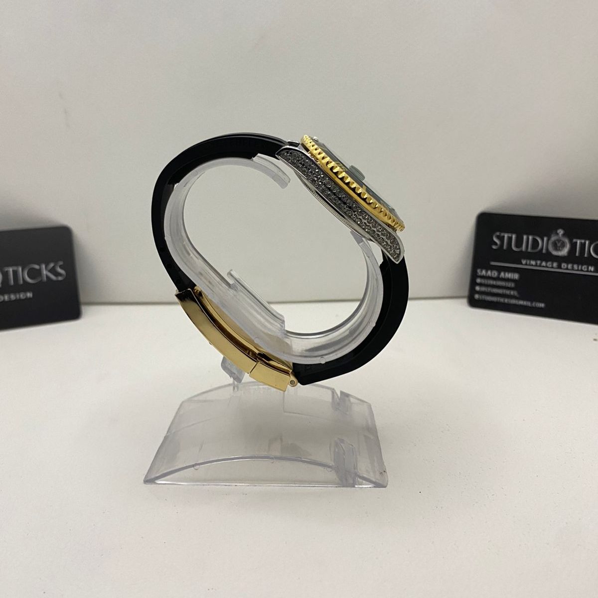A bold take on the classic Submariner, available in Black-Silver and Black-Gold variants. Designed with a durable rubber strap, diamond-accented lugs, and a rotating bezel for a sporty luxury appeal.
